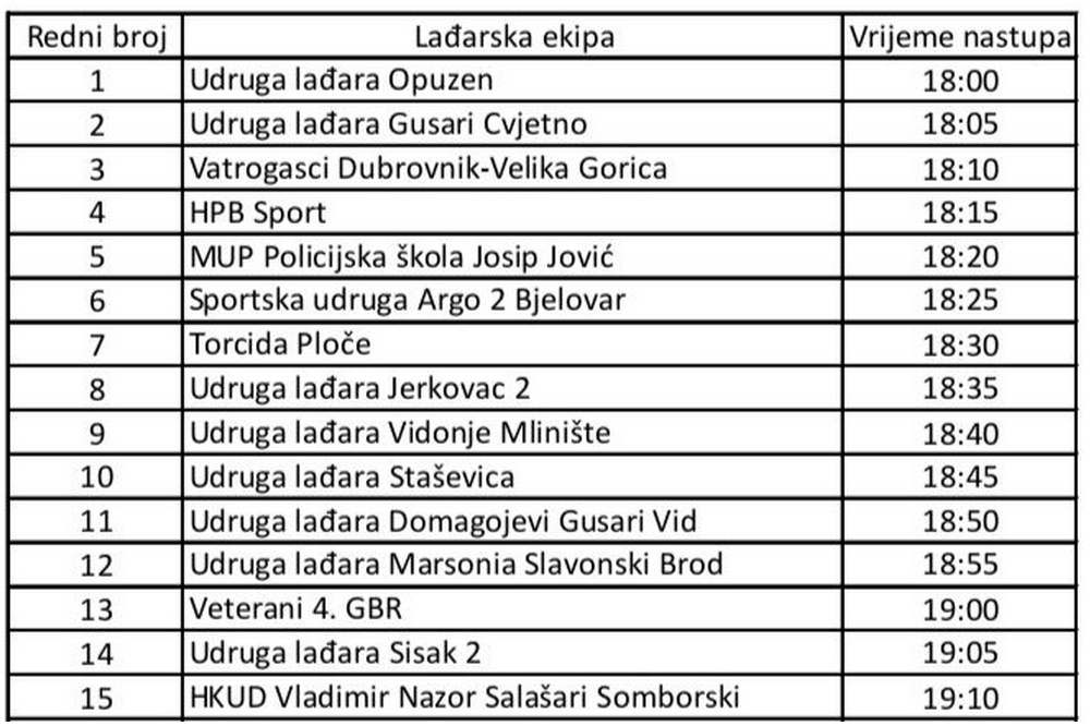 Raspored nastupa lađarskih ekipa na Brzinskim utrkama